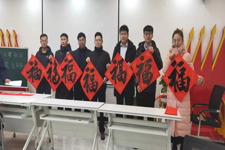 貼“?!弊?,是迎新春必不可少的傳統(tǒng)項(xiàng)目。每年年末,不少書畫藝術(shù)家都會(huì)走出書齋,以送“?!钡男问絹砥砀P履辍楹霌P(yáng)中華優(yōu)秀傳統(tǒng)文化,迎接新春佳節(jié)的到來,近日,恒大名都社區(qū)黨支部邀請(qǐng)山東省商業(yè)職業(yè)技術(shù)學(xué)院書畫教研室曹懷義主任及多位社區(qū)書法愛好者走進(jìn)濟(jì)南幸福城小區(qū)揮毫潑墨,為居民送“?!钡郊摇D茉醇瘓F(tuán)機(jī)關(guān)黨員、入黨積極分子等20余人參加此次活動(dòng)。