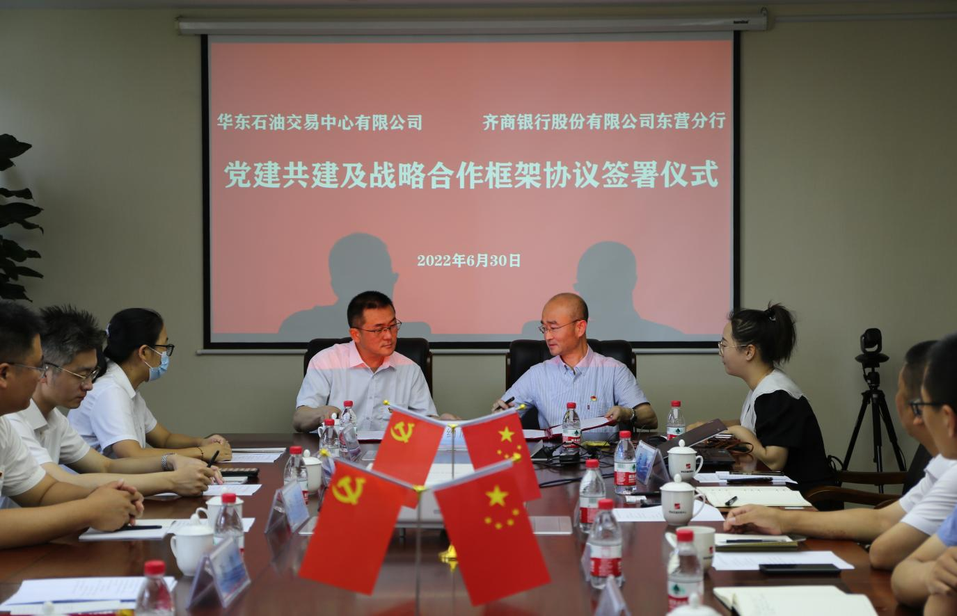 華東石油交易中心與齊商銀行東營分行簽約黨建共建和戰(zhàn)略合作框架